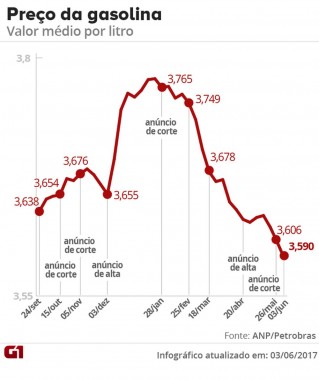 No dia 25, a Petrobras anunciou queda de 5,4% do preço da gasolina nas refinarias. O repasse ou não da redução do preço aos consumidores dependem dos postos de gasolina.
